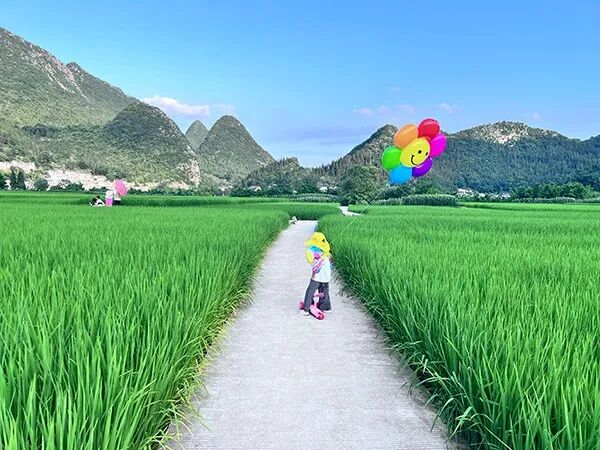 “这边的喀斯特地貌给人感觉就是看得非常全,稻田跟村落也让人感觉到非常安逸和舒适,感觉这里是一个可以长居小憩,骑车观光的好地方。”浙江游客熊舒宁说。